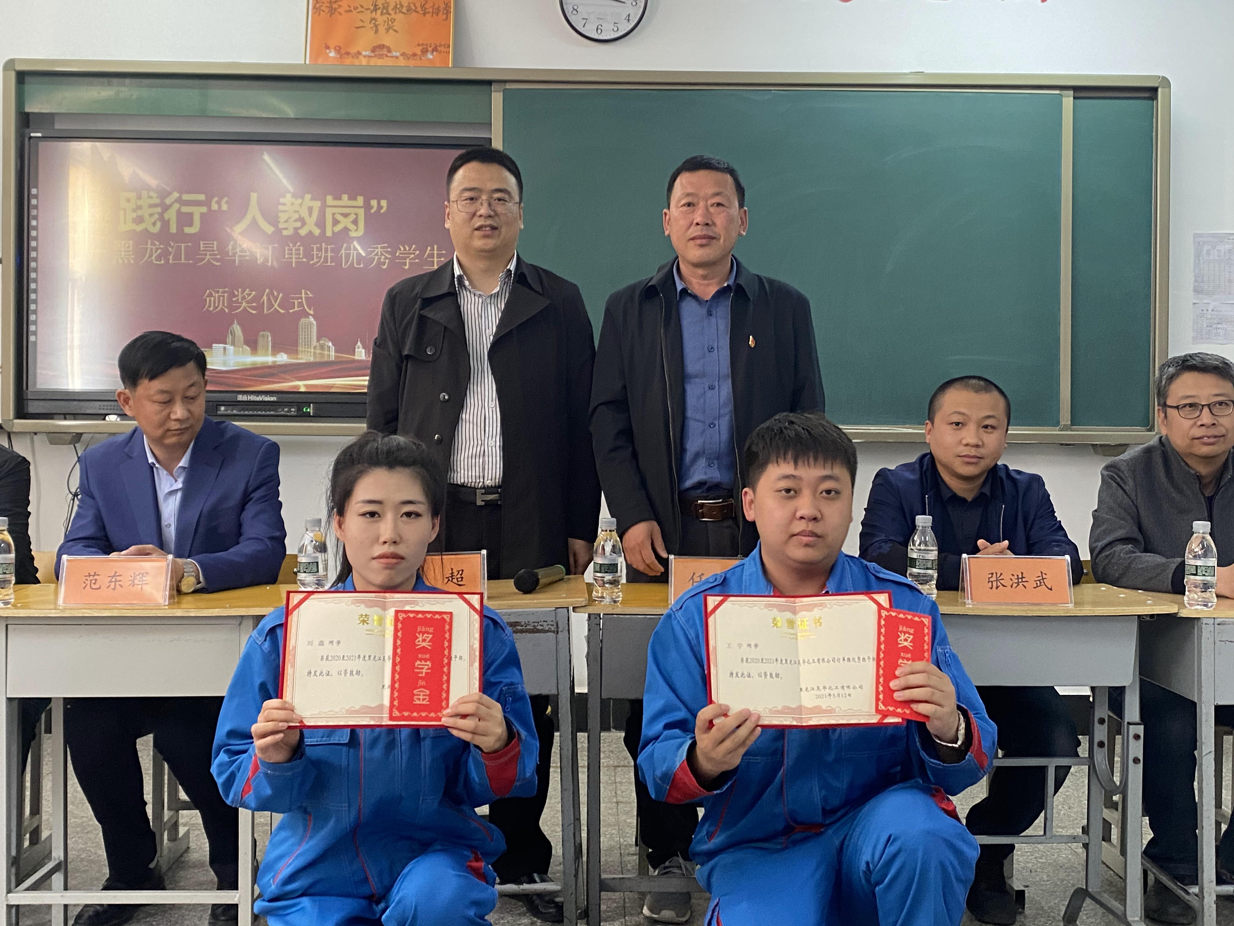 ??? 踐行“人教崗”——昊華訂單班優(yōu)秀學(xué)員頒獎(jiǎng)儀式于下午3點(diǎn)在昊華班教室準(zhǔn)時(shí)召開,43名學(xué)員身著我公司工裝整齊劃一、激情飽滿,班級(jí)墻面的布置充滿了我公司企業(yè)文化的內(nèi)涵。齊齊哈爾市機(jī)電工程系主任藺心書主持了頒獎(jiǎng)儀式。