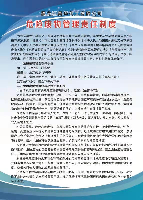 黑龍江昊華化工有限公司危險廢物管理責任制度