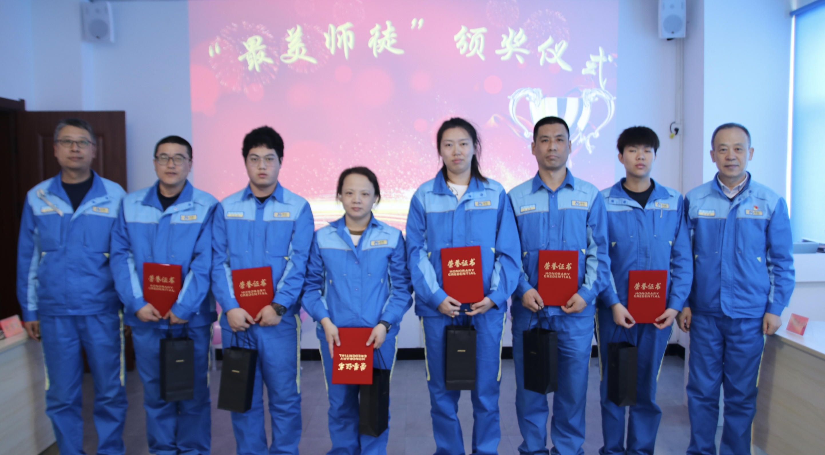 3月22日,車間舉辦“最美師徒 匠心傳承”頒獎儀式,公司黨委高度重視,公司主要負責人劉志新、黨群工作部主任王國君蒞臨參會,并為獲獎師徒頒發(fā)證書及獎品作為鼓勵。獲獎師徒代表分享工作經歷和感受,從主要做法、活動效果及經驗體會等方面介紹各自“師帶徒”工作開展情況。黨員、團員代表以手語舞《感恩的心》表達了徒弟對師傅的感謝,也表達了員工對企業(yè)的感恩。